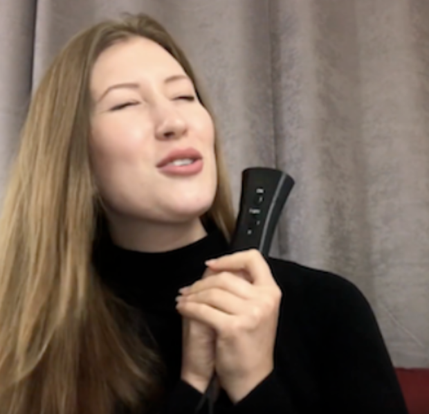 One of her dogs started yapping. “Here we go,” I thought. But as soon as it started yapping, she pulled out this device, quietly clicked it at the dog, and the dog INSTANTLY stopped barking, looked at her, then layed back down in her lap.